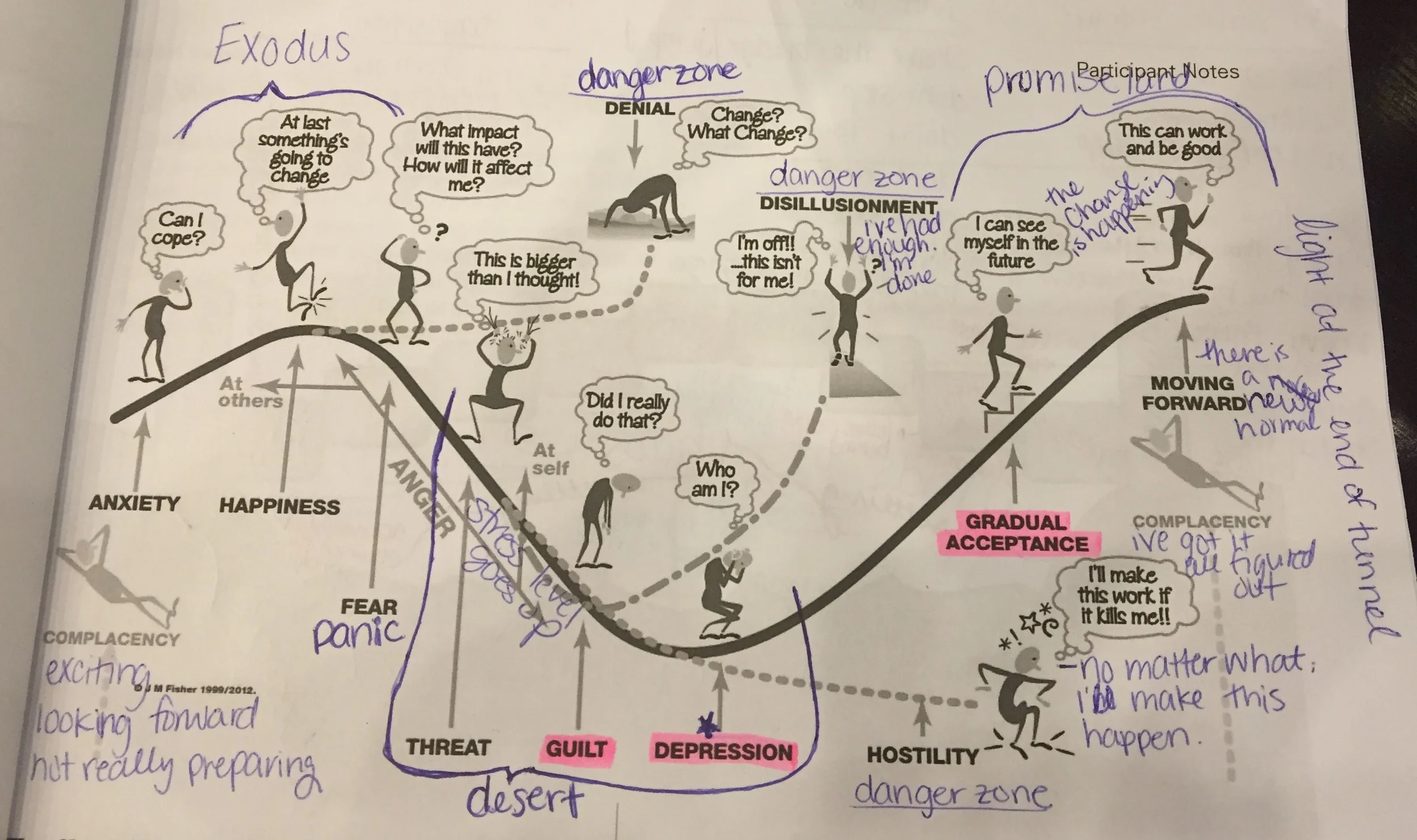 Here are the emotions roller coaster or curve during transitions (it reminds me of the culture shock roller coaster)