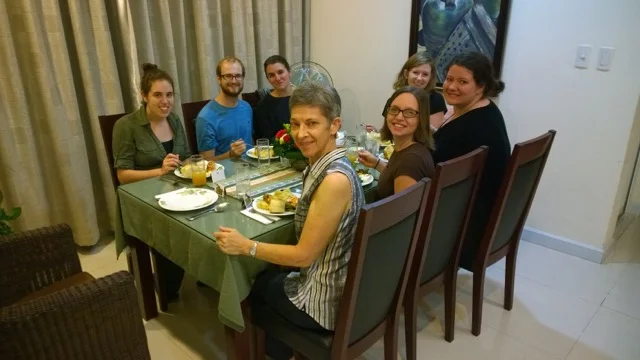 On Saturday, ​my friend Hương invited us to a Thanksgiving dinner with a club she helped start for locals and foreigners to become friends and help each other. At the event we had a brief history of American Thanksgiving.  Then we enjoyed a meal together. This meal included pizza and local food, someone also made mashed potatoes! Then while we were eating we did some discussion questions or at least tried but we weren't a very talkative group. After talking we separated into two teams to play a game of charades but with a twist. For this game of charades it was played like the game telephone but instead of words you used actions. It was so fun to watch the other team's actions change as each person performed for the next. By the time it got to the person who was guessing the action rarely looked the same as the beginning. It was hilarious! I laughed so hard I cried.