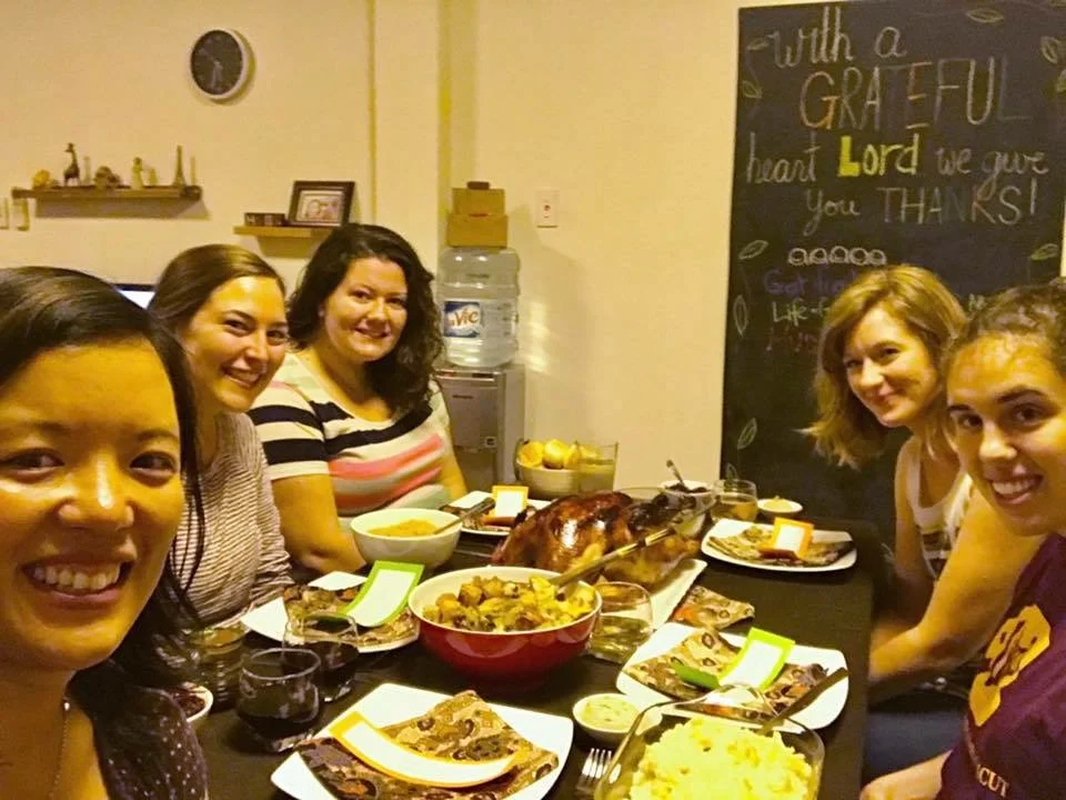 On Friday, we were invited to our pastor's house for a Thanksgiving dinner. ​My roommate and I brought a salad and bread to their apartment after school was over. It was so great to share in a meal with our pastor's family, our friend Kelsey, and a couple from church. The dinner was amazing, such delicious food! After dinner we played some card games. It was a great time of laughter and fun! So thankful for the friends God has given me here!